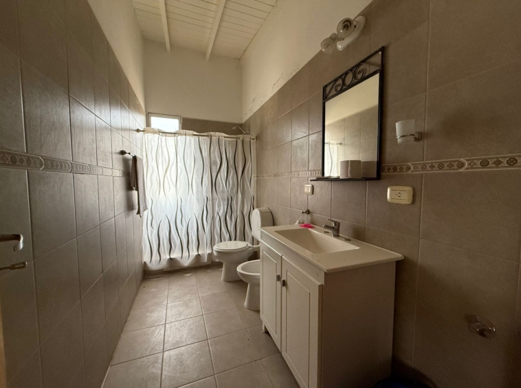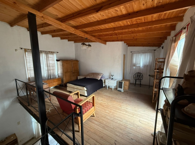 La planta alta cuenta con un dormitorio estilo loft, con entrepiso de madera y salida a una terraza con puertabalcón que aporta luz y vistas al patio. También se ubica en este nivel un baño completo en buen estado.